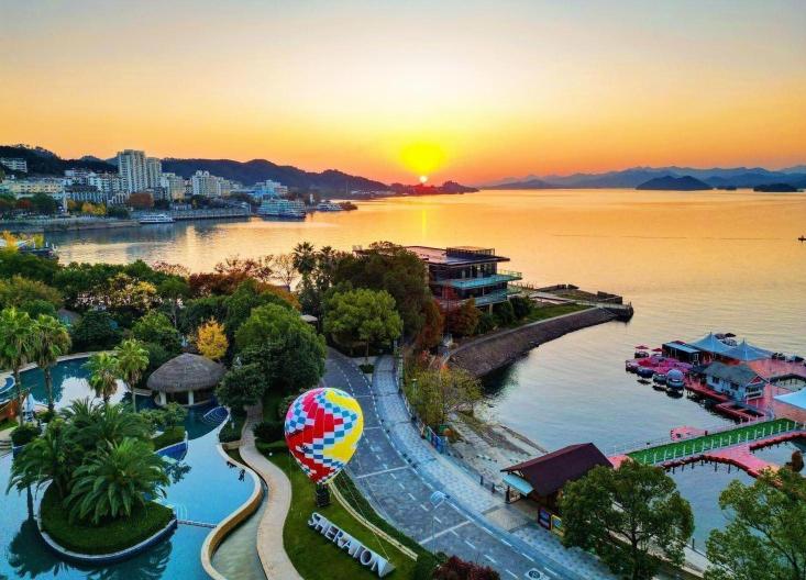 Facing Qiandao Lake, the Sheraton Qiandao Lake Resort (Qiandaohu Xilaideng Dujia Jiudian) features spacious rooms outfitted with 37-inch LCD TVs, high-speed internet access and rainforest showerheads. With spacious balconies, guests can enjoy views of picturesque Qiandao Lake and surrounding mountains.Sheraton Qiandao Lake Resort's restaurants serve a great deal of delicacies ranging from Qiandao Lake fish to international dishes. To conduct business or keep in touch with their families, guests can make full use of the on-site internet café.When it comes to unwind, guests can go to the Shine Spa by Sheraton, take a refreshing dip in an outdoor swimming pool, or take exercise at the fitness center. In addition, kids can have fun at the children's club.